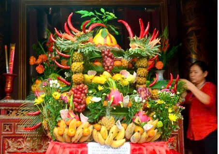 Chúng con thành tâm tiến dâng lễ bạc, oản quả, hương hoa.