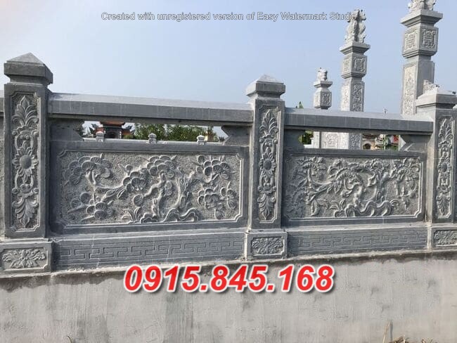 Lan can đá là hạng mục được thiết kế bao xung quanh khuôn viên giúp bảo vệ công trình bên trong. Đồng thời, cũng giúp phân chia ranh giới giữa khu lăng với bên ngoài để đảm bảo tính riêng tư, trang nghiêm cho không gian thờ cúng. Trên bề mặt lan can được chạm khắc hoa văn tỉ mỉ tùy vào sở thích và yêu cầu phong thủy.