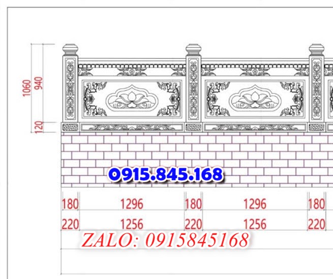 Lan can dùng cho khu lăng mộ có chiều cao từ 75cm đến 107cm.
