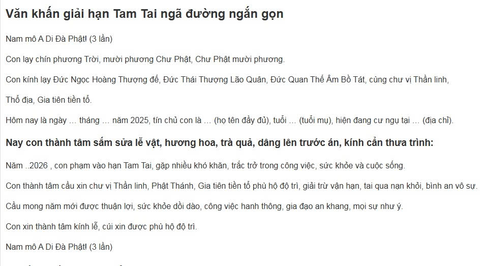 05Văn khấn cúng tam tai ngã ba đường gải hạn, Tam tai là kiếp nạn 3 năm một lần trong mỗi năm tuổi, người bị tam tai gặp nhiều khó khăn trong cuộc sống và công việc, điều này khiến Tam tai được nhiều người lưu ý.