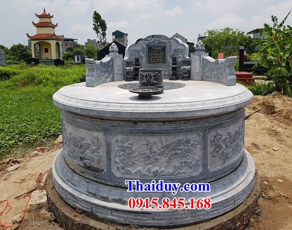 Mẫu mộ đá hình tròn được làm từ đá tự nhiên nguyên khác nhau như: đá xanh, đá ninh bình, đá thanh hóa, đá trắng hay đá vàng. Những mẫu mộ tròn được thiết kế hiện đại, đa dạng mẫu, kiểu dáng, với những mẫu mộ đá làm liền khối hay được ghép lại được với nhau.