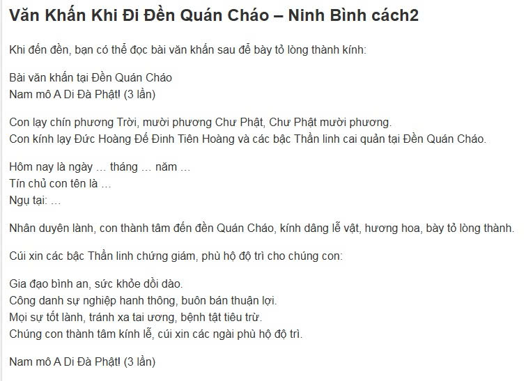 Văn Khấn Khi Đi Đền Quán Cháo – Ninh Bình cách2