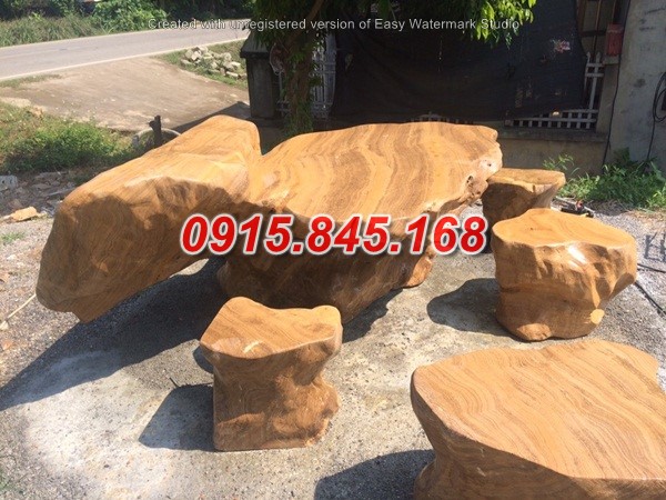 08 Bộ bàn ghế bằng đá vàng đẹp bán Thái Bình, còn gọi bộ bàn ghế được làm từ đá tự nhiên nguyên khối đẹp khác nhau như: đá xanh, đá xanh rêu, đá ninh bình, đá thanh hóa, đá vàng, đá cẩm thạch, đá vân gỗ, đá hóa bình, đá xanh ngọc yên bái, đá ba dan.