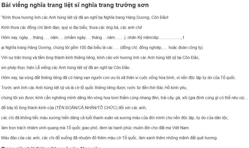 Bài viếng nghĩa trang liệt sĩ nghĩa trang trường sơn