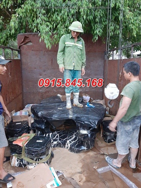 Sản phẩm bàn đá vân gỗ tự nhiên với kích thước 138cm x 100cm x 58cm có thể được sắp xếp theo yêu cầu của khách hàng. Mỗi bộ sản phẩm gồm 1 bàn và 8 ghế đôn,