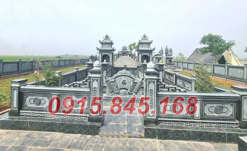 Khu lăng mộ đá hay nghĩa trang gia đình có thiết kế hiện đại, với những hạng mục khác nhau như: lăng thờ, lan can tường hàng rào, cuốn thư bức bình phong lăng mộ, cổng khu lăng mộ.