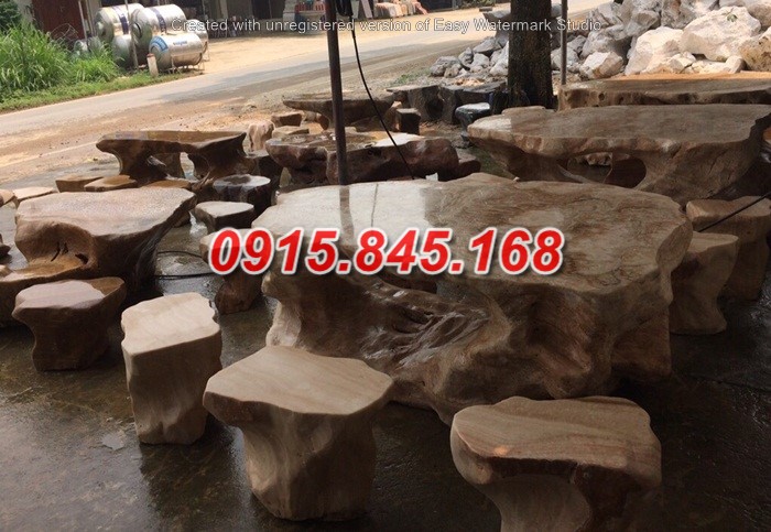 Bàn ghế đá giả gỗ vân gỗ thô chưa đánh bóng