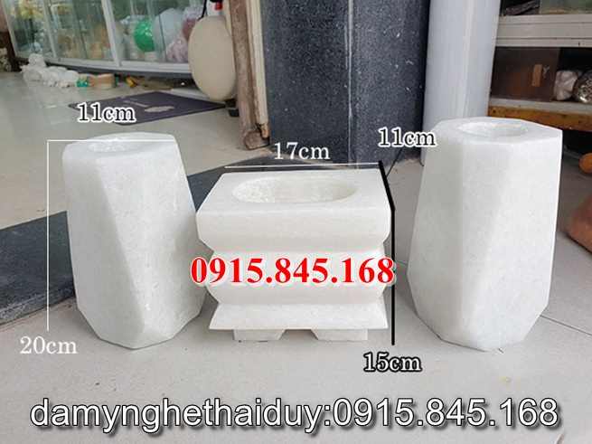 23 bộ đồ thờ đá tự nhiên đẹp tại nghệ an. còn được gọi bát hương lư hương nhỏ lọ hoa mâm bồng đĩa đựng trái cây hay bình bông được làm từ những mẫu đá tự nhiên nguyên khối khác nhau như: đá xanh, đá trắng, đá ninh bình, đá thanh hóa, đá vàng, đá xanh rêu.
