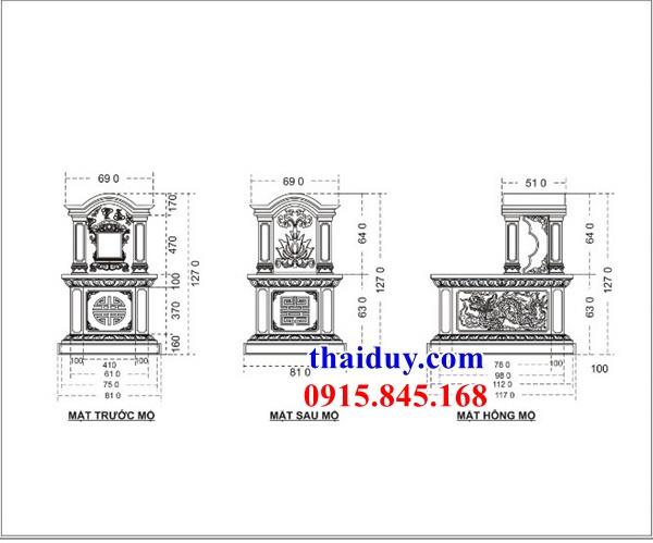 Mộ có kích thước đế: 81 x 127 cm (tài trí, tài vượng và tiến bảo)