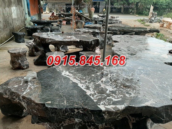 Bàn ghế đá sân vườn đen đá nguyên khối