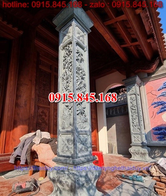 Nhiều chân cột đá được chạm khắc mô phỏng theo đài sen, hoặc trang trí bằng họa tiết hoa lá,… Điều này góp phần tăng thêm tính mỹ quan cho đền chùa, nhà thờ họ, từ đường,…