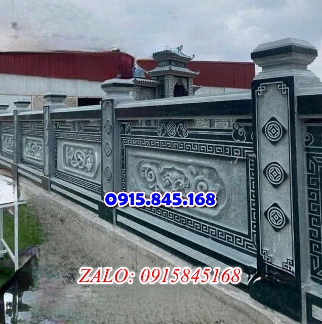 Đá xanh đen : Chất liệu này được chọn nhiều để chế tạo lan can tường bao hàng rào đá cho các công trình như đền, chùa, nhà thờ, đình làng, … Ưu điểm của loại đá này là khả năng chịu đựng nhiệt độ cao, chống lại rêu mốc và mang vẻ đẹp cổ điển, trầm mặc. Đặc biệt, đá xanh đen Thanh Hóa có độ bền cao, ít cần bảo dưỡng nên vẫn giữ được vẻ đẹp theo thời gian.