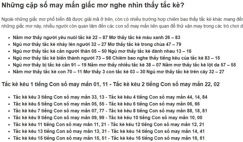 Những cặp số may mắn giấc mơ nghe nhìn thấy tắc kè?