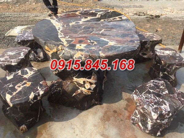 45 bộ bàn ghế bằng đá phong thủy bán chạy nhất được làm từ đá tự nhiên nguyên khối khác nhau như: đá xanh, đá vàng, đá trắng, đá xanh rêu, đá ninh bình, đá thanh hóa, đá xanh ngọc. Mẫu bộ bàn ghế đá tự nhiên nguyên khối được bán dựa trên mẫu, chất liệu đá, kích thước cùng chi phí vận chuyển lắp đặt.