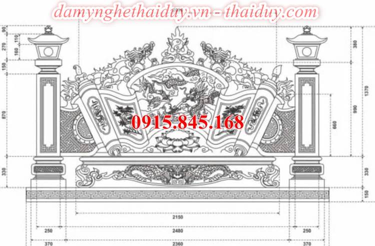 Cấu tạo và kích thước của cuốn thư đá, bản vẽ bình phong đá.