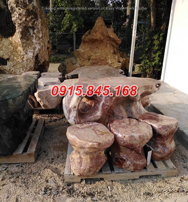 Bàn ghế đá tự nhiên màu vân gỗ