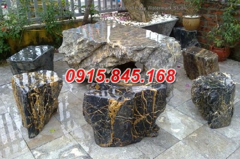 Bàn ghế đá tự nhiên màu vân gỗ