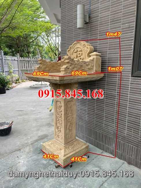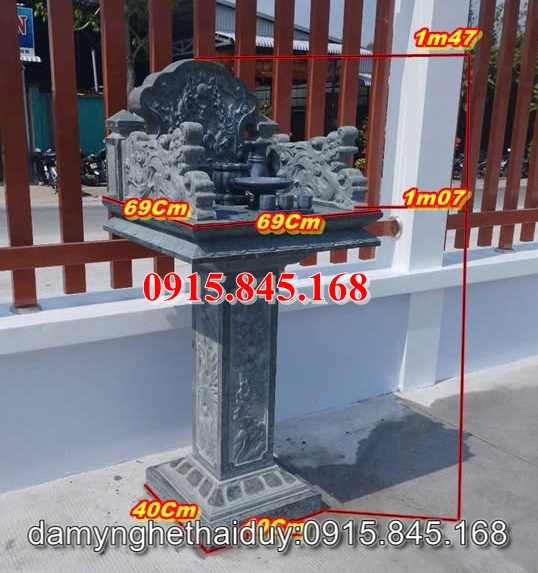 55+ xây ban bàn thờ bằng đá bán sơn la, Hình dáng của bàn thờ rất đơn giản, thông thường sẽ được đặt trên một cột đá chắc chắn. Vì được đặt ngoài trời, lộ thiên nên bàn thờ ngoài trời thường xuyên chịu tác động của những điều kiện thời tiết khắc nghiệt như mưa, gió, nắng nóng,… Do đó chất liệu thường được sử dụng để làm bàn thờ ngoài trời là đá tự nhiên. Đặc biệt những khối đá tự nhiên sẽ được chạm khắc những họa tiết, hoa văn đẹp mắt để mang đến sự linh thiêng, uy nghiêm và cao quý cho bàn thờ này.
