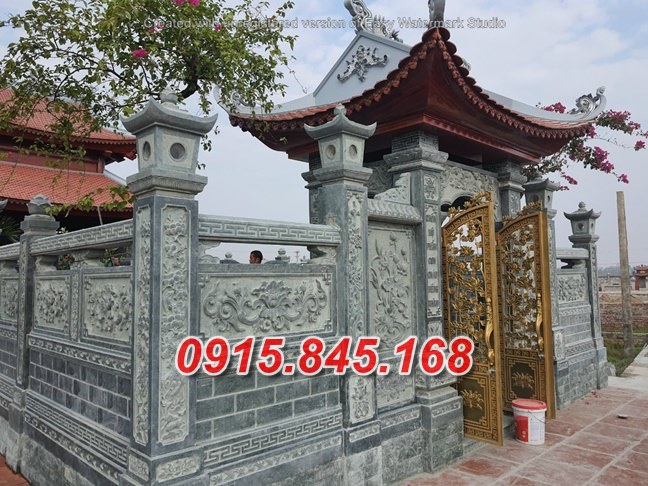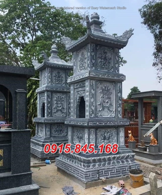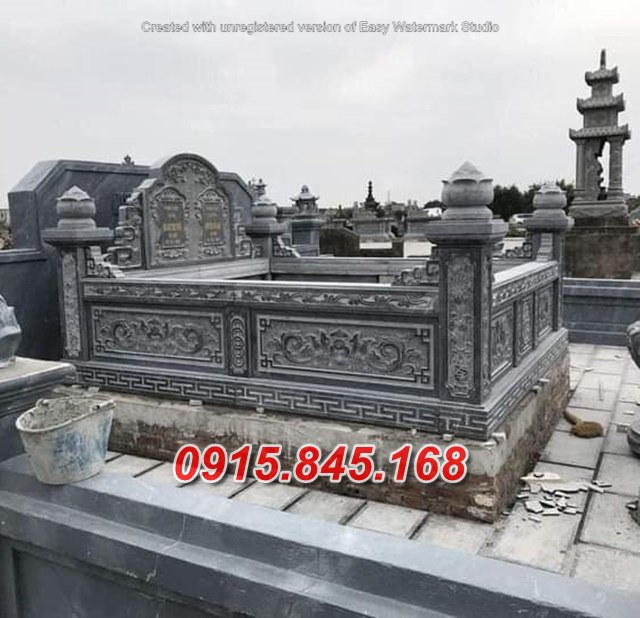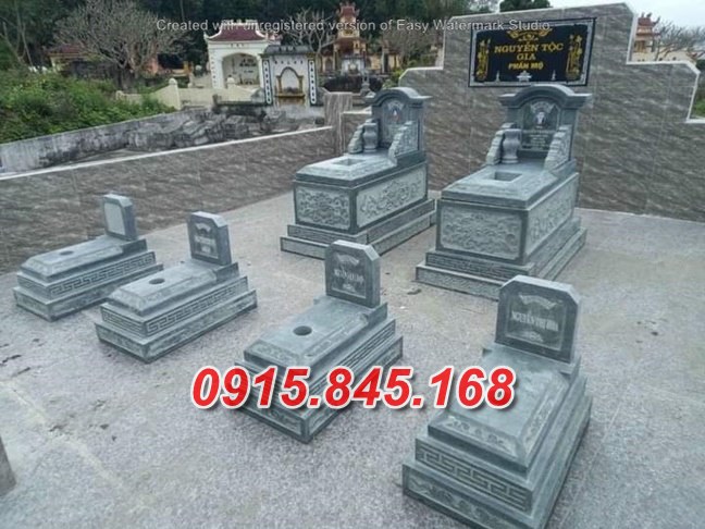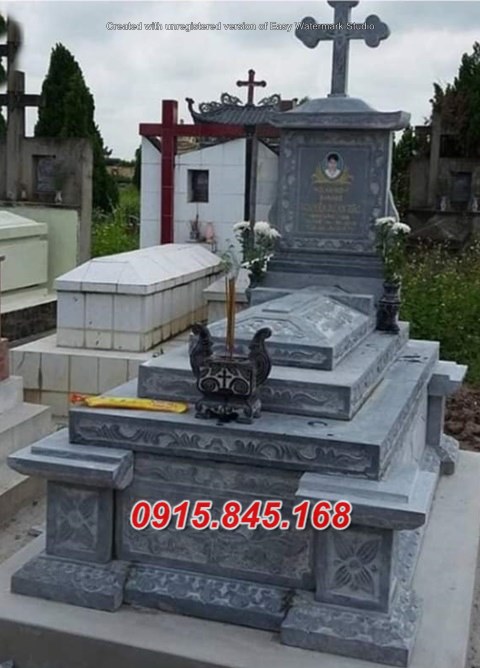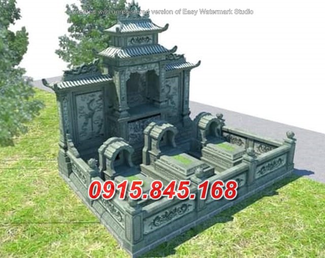Mộ một mái đá kiểu chùa: Với thiết kế mái chùa cổ kính, trang trí hoa văn tỉ mỉ, tạo nên vẻ uy nghi và trang trọng.