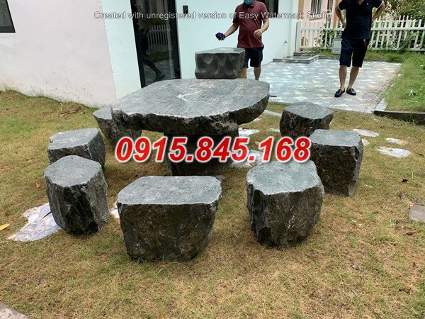 Bàn ghế đá sân vườn đen đá nguyên khối