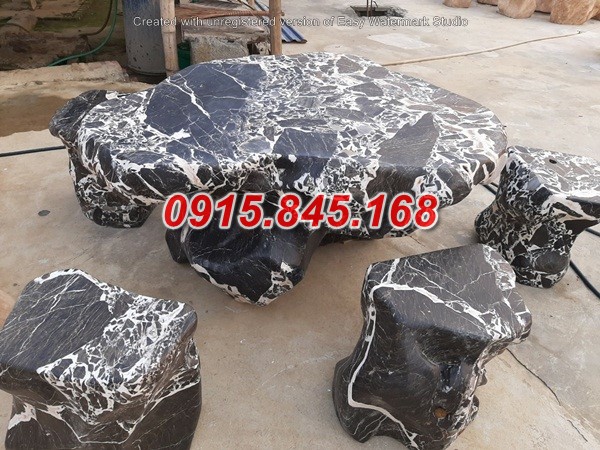 Bàn ghế đá sân vườn đen đá nguyên khối