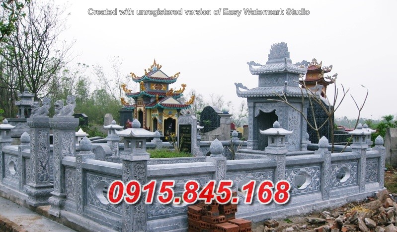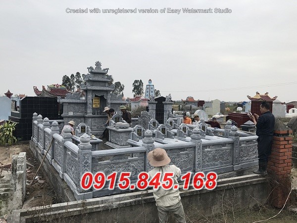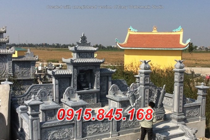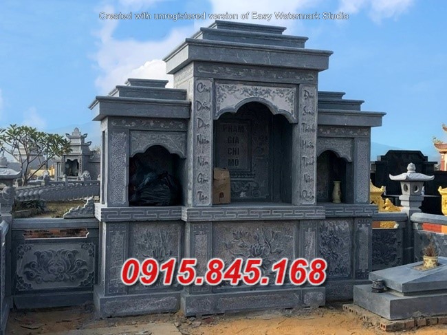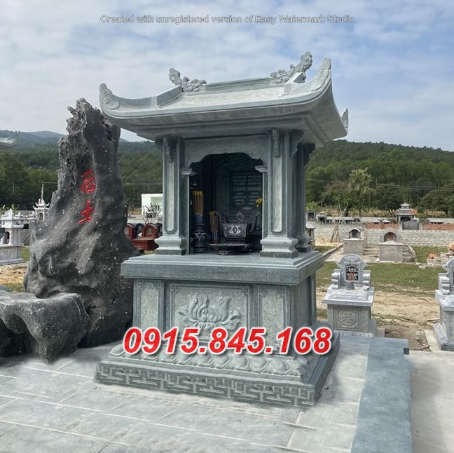 Mộ một mái đá kiểu chùa: Với thiết kế mái chùa cổ kính, trang trí hoa văn tỉ mỉ, tạo nên vẻ uy nghi và trang trọng.