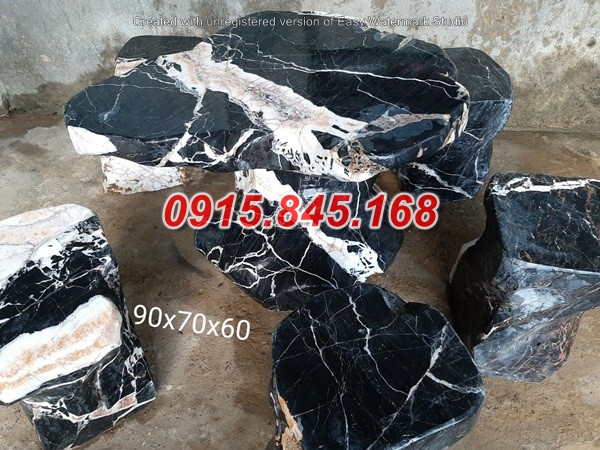 Bàn ghế đá sân vườn đen đá nguyên khối