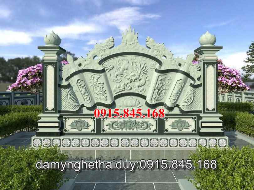 Mẫu cuốn thư bức bình phong đá khu lăng mộ nghĩa trang đẹp bán tại thanh hóa