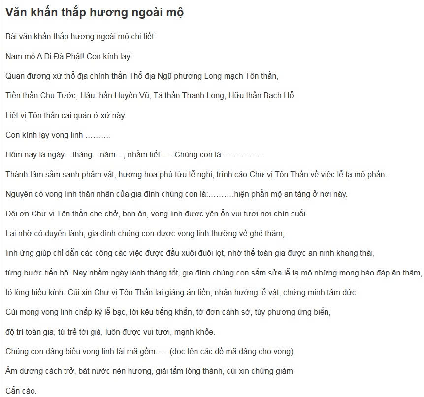 Bài văn khấn thắp hương ngoài mộ chi tiết:
