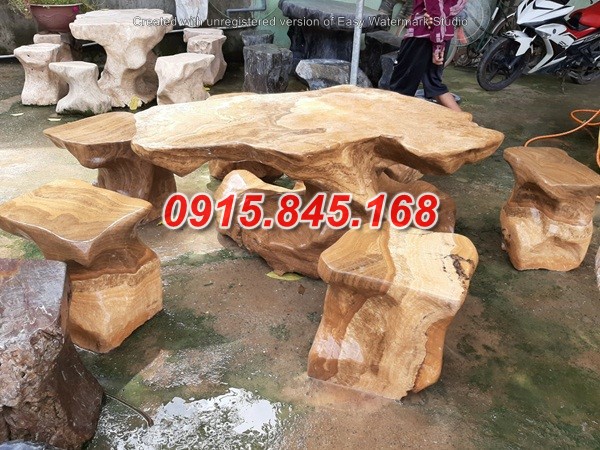 Bàn ghế đá giả gỗ vân gỗ thô chưa đánh bóng