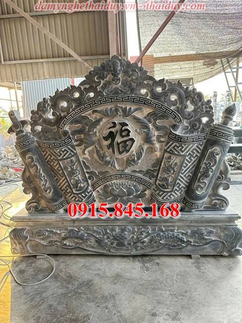 Bán sẵn tắc môn bức bình phong đình chùa miếu bằng đá xanh Thanh Hóa thiết kế hiện đại