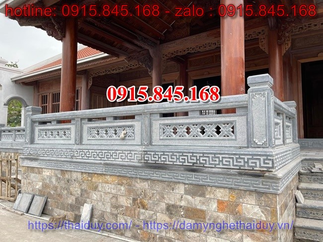 Đối với những công trình tâm linh như: khu lăng mộ đá, chùa chiền,đình làng,…lan can tường bao hàng rào đá tạo nên 1 khuôn viên khép kín, bắt mắt cho công trình.