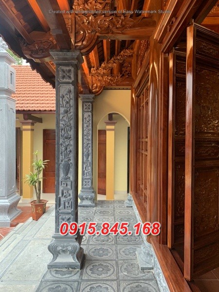 Nhiều chân cột đá được chạm khắc mô phỏng theo đài sen, hoặc trang trí bằng họa tiết hoa lá,… Điều này góp phần tăng thêm tính mỹ quan cho đền chùa, nhà thờ họ, từ đường,…