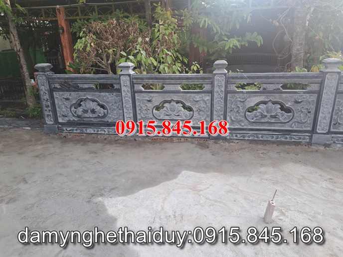 Đá xanh đen : Chất liệu này được chọn nhiều để chế tạo lan can tường bao hàng rào đá cho các công trình như đền, chùa, nhà thờ, đình làng, … Ưu điểm của loại đá này là khả năng chịu đựng nhiệt độ cao, chống lại rêu mốc và mang vẻ đẹp cổ điển, trầm mặc. Đặc biệt, đá xanh đen Thanh Hóa có độ bền cao, ít cần bảo dưỡng nên vẫn giữ được vẻ đẹp theo thời gian.