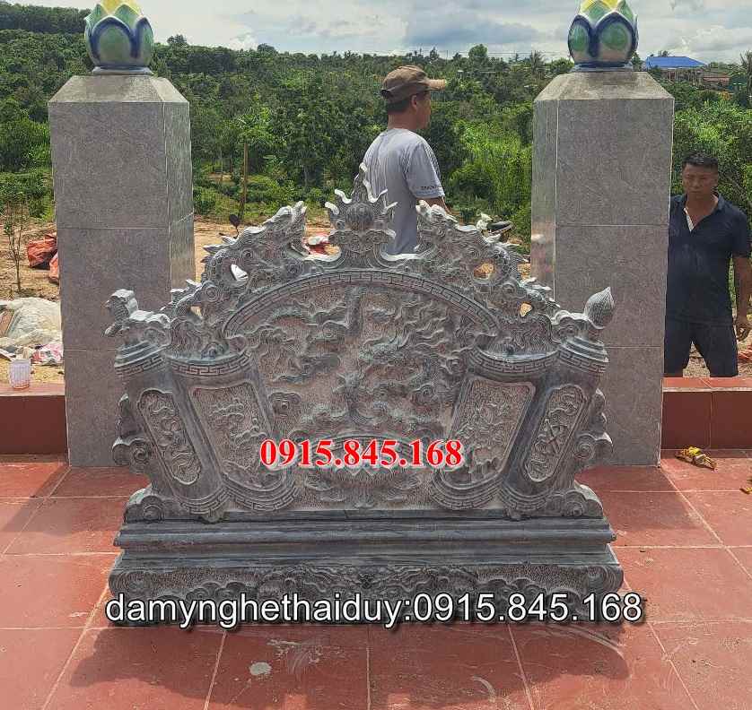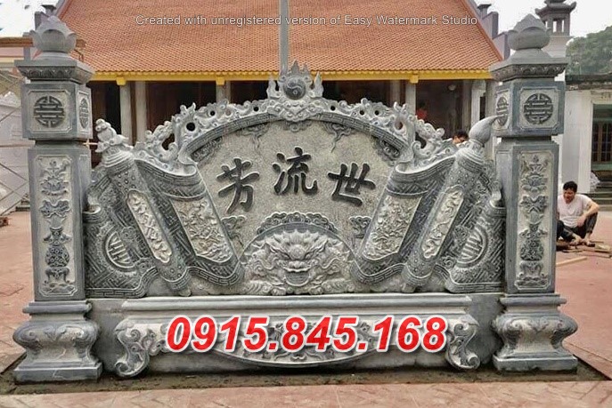 Mẫu cuốn thư bình phong tắc môn đá nhà thờ họ