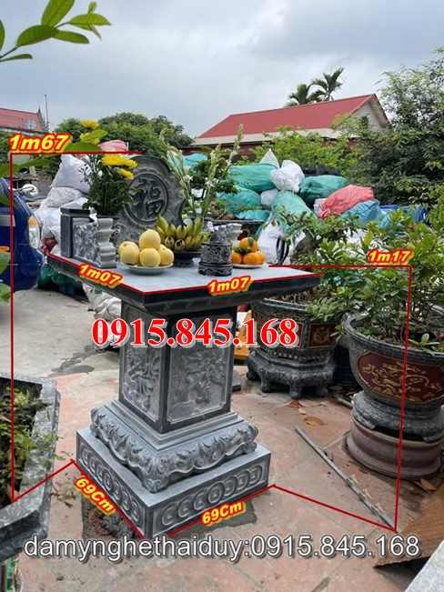 hậu giang cây hương thờ lăng mộ bằng đá đẹp, Kiểu dáng cây hương thờ rất đơn giản, thông thường sẽ được đặt trên một cột đá chắc chắn. Vì được đặt ngoài trời, lộ thiên nên cây hương thờ ngoài trời thường xuyên chịu tác động của những điều kiện thời tiết khắc nghiệt như mưa, gió, nắng nóng,… Do đó chất liệu thường được sử dụng để làm bàn thờ ngoài trời là đá tự nhiên. Đặc biệt những khối đá tự nhiên sẽ được chạm khắc những họa tiết, hoa văn đẹp mắt để mang đến sự linh thiêng, uy nghiêm và cao quý cho bàn thờ này.