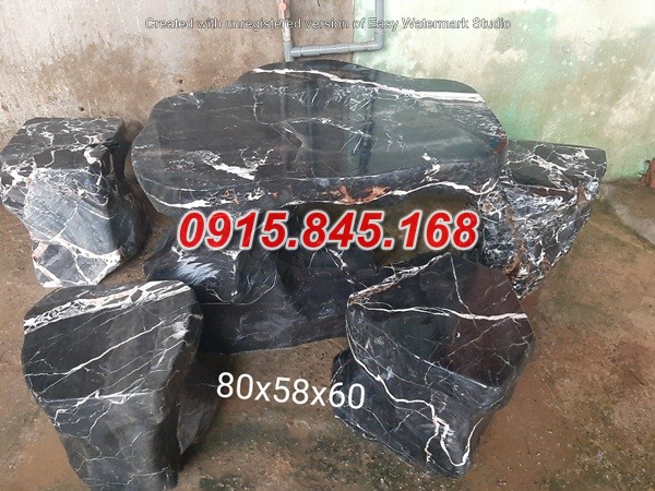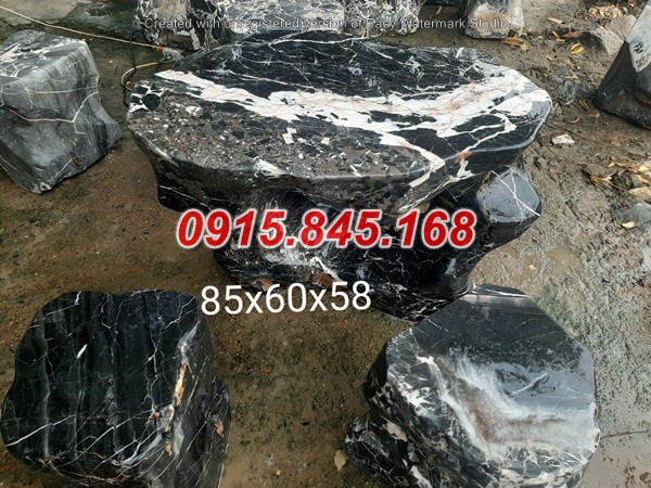 Bàn ghế đá sân vườn đen đá nguyên khối