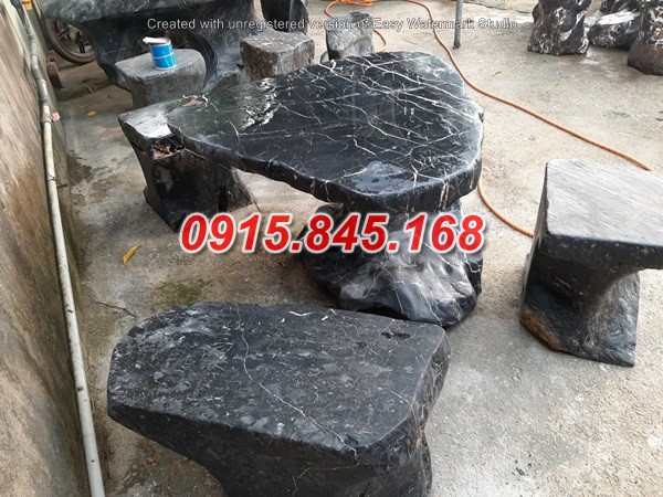 Bàn ghế đá sân vườn đen đá nguyên khối