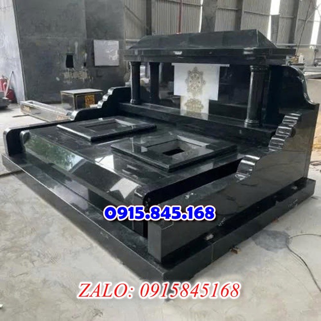 Mộ đôi bằng đá xanh đen cũng là một trong những loại mộ đôi được nhiều người ưa chuộng. Ninh Bình và Thanh Hóa là hai nơi có nhiều đá xanh đen nhất. Và cũng là nơi có làng nghề chất lượng cao, mẫu lăng mộ thiết kế đẹp mắt.