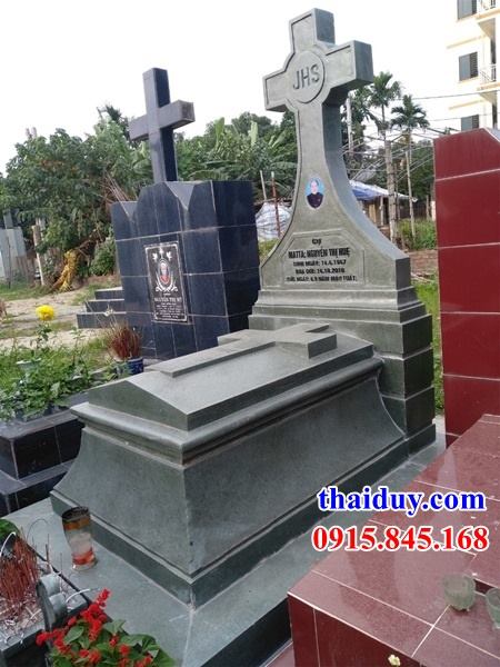Mộ đá công giáo được thiết kế dành riêng cho những người theo Đạo Thiên Chúa. Hoa văn và kiểu dáng khắc trên mộ là đặc trưng của Đạo giáo. Đặc biệt, cây thánh giá được đặt ở vị trí cao nhất, trang trọng nhất. Người ta thường chọn đá hoa cương, đá xanh rêu hay xanh đen để đảm bảo chất lượng của công trình.