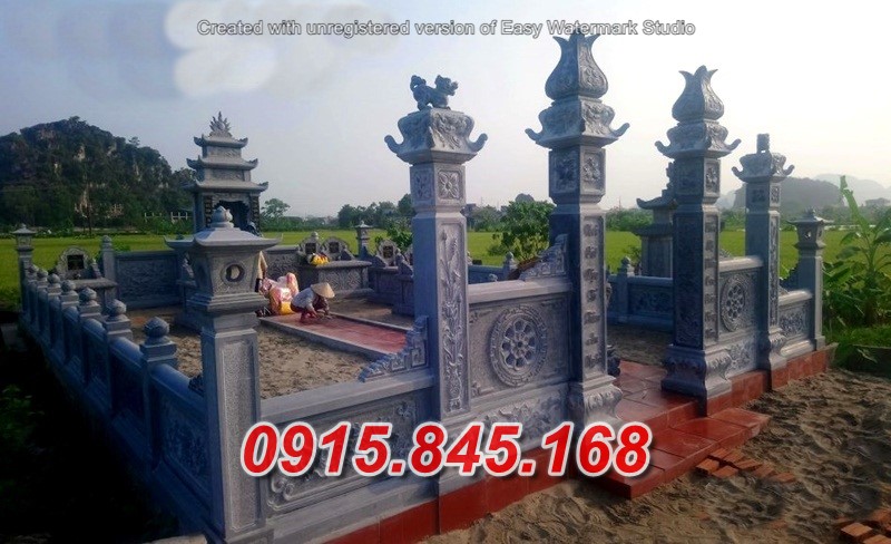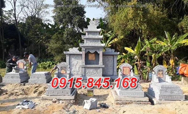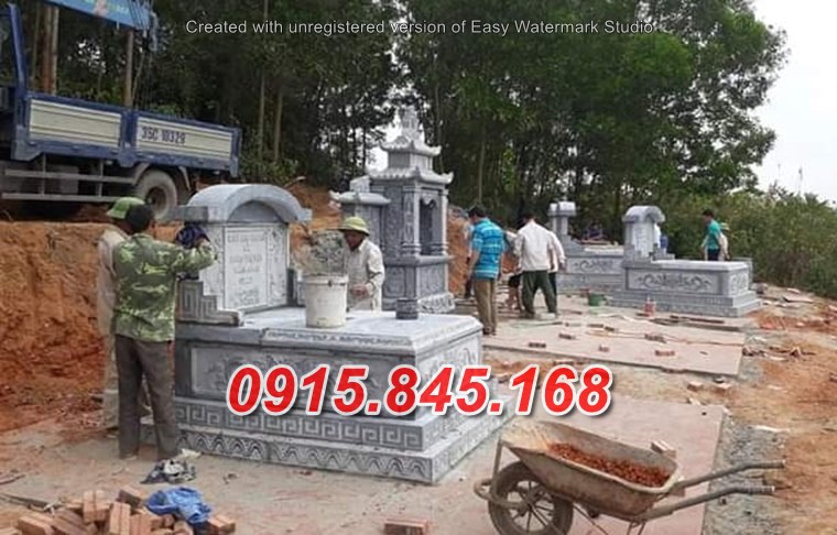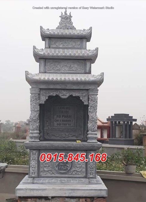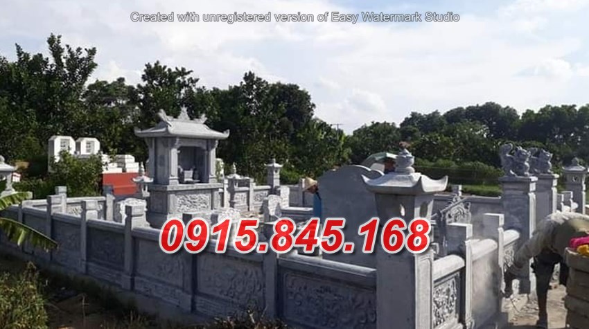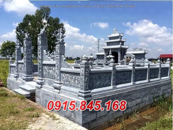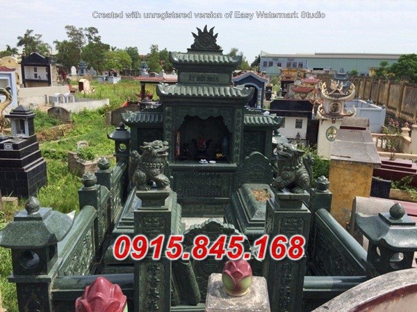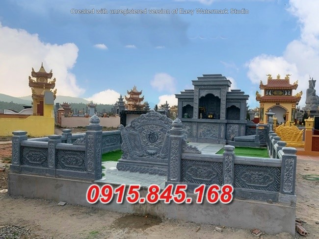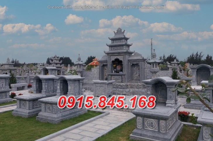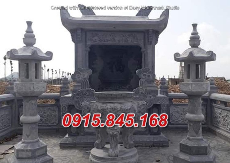 Mộ một mái đá kiểu chùa: Với thiết kế mái chùa cổ kính, trang trí hoa văn tỉ mỉ, tạo nên vẻ uy nghi và trang trọng.