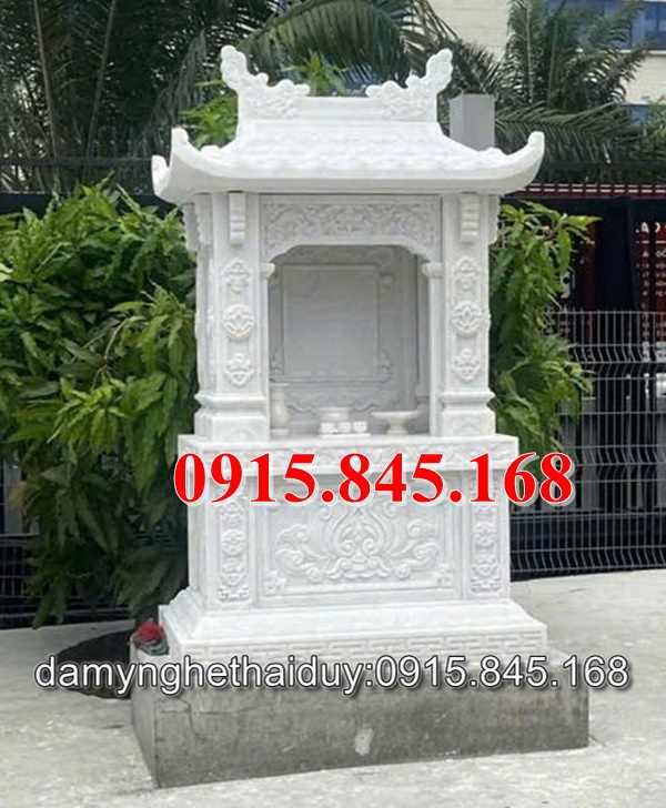 Mẫu đá trắng cũng luôn được ưa chuộng trong chạm khắc các sản phẩm đá mỹ nghệ trong đó có bàn thờ ông thiên ngoài trời. Không kém cạnh gì so với đá xanh hay đá vàng về độ bền vượt thời gian, hay màu sắc đặc trưng. Đá trắng khi được chọn làm bàn thờ thiên đem lại cho khách hàng một công trình với vẻ đẹp thanh tao, cao quý và đầy tính tâm linh, phong thủy.