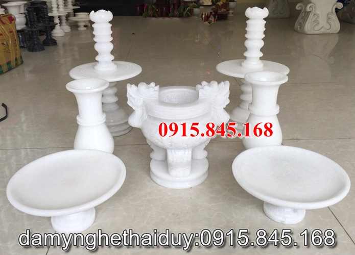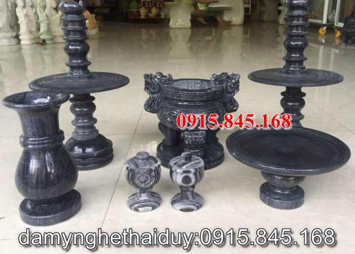 Bộ bát hương thờ gia tiên bao gồm bát hương cắm nhang, chân đèn bàn thờ, bình hoa đá và dĩa đá. Bên trên bát Hương có thể được chạm khắc họa tiết Song Long Chầu Nguyệt dịu mắt. Sản phẩm thường được sản xuất với kích thước lớn nhỏ khác nhau để phù hợp với từng kích cỡ bàn thờ.