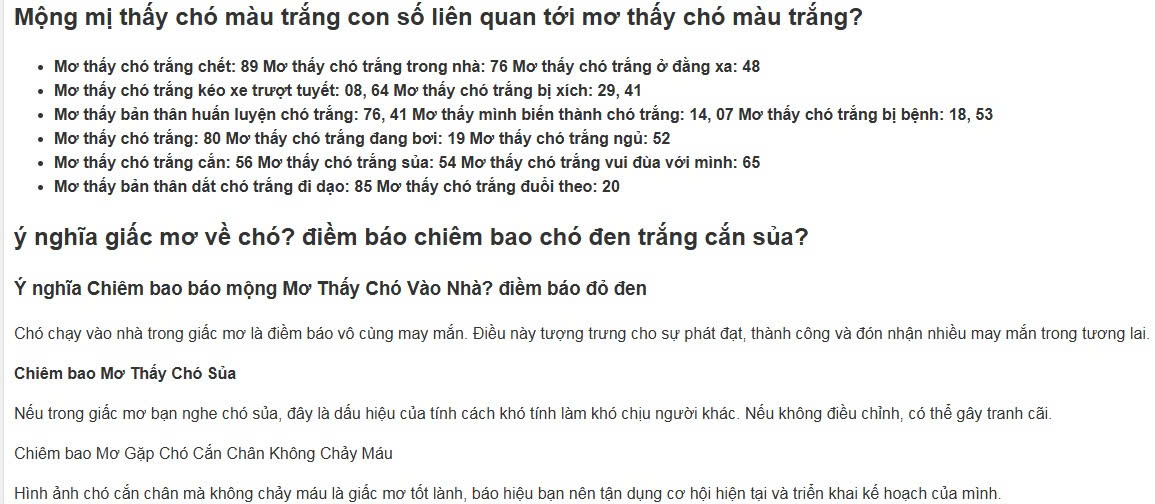 - Mơ thấy bản thân dắt chó trắng đi dạo: 85 Mơ thấy chó trắng đuổi theo: 20