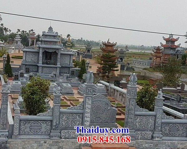 Khu lăng mộ đá hay nghĩa trang gia đình có thiết kế hiện đại, với những hạng mục khác nhau như: lăng thờ, lan can tường hàng rào, cuốn thư bức bình phong lăng mộ, cổng khu lăng mộ.