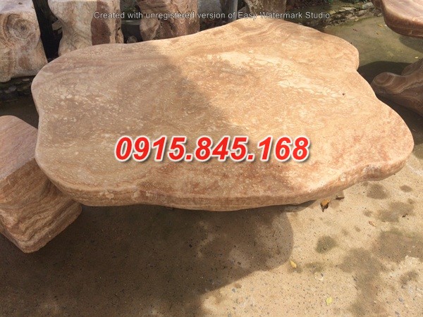 Bàn đá tự nhiên vân gỗ lên nước nguyên khối
