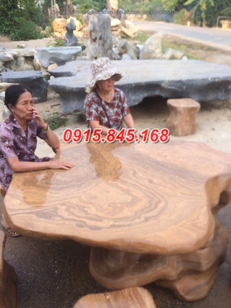 Bàn đá tự nhiên vân gỗ lên nước nguyên khối