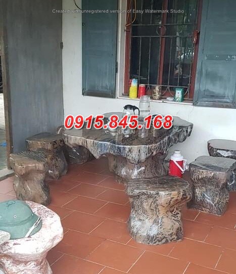 Bàn ghế đá giả gỗ vân gỗ thô chưa đánh bóng