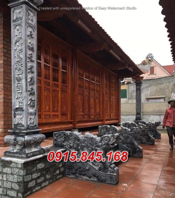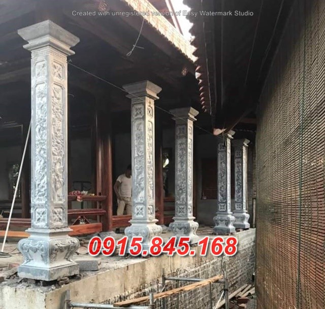Nhiều chân cột đá được chạm khắc mô phỏng theo đài sen, hoặc trang trí bằng họa tiết hoa lá,… Điều này góp phần tăng thêm tính mỹ quan cho đền chùa, nhà thờ họ, từ đường,…